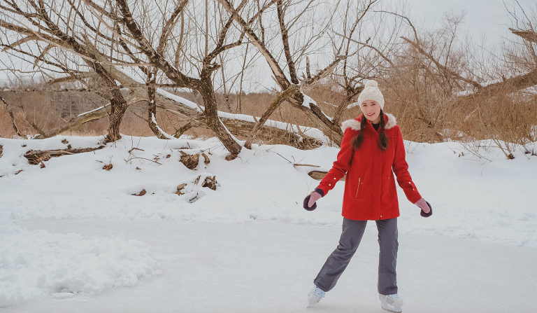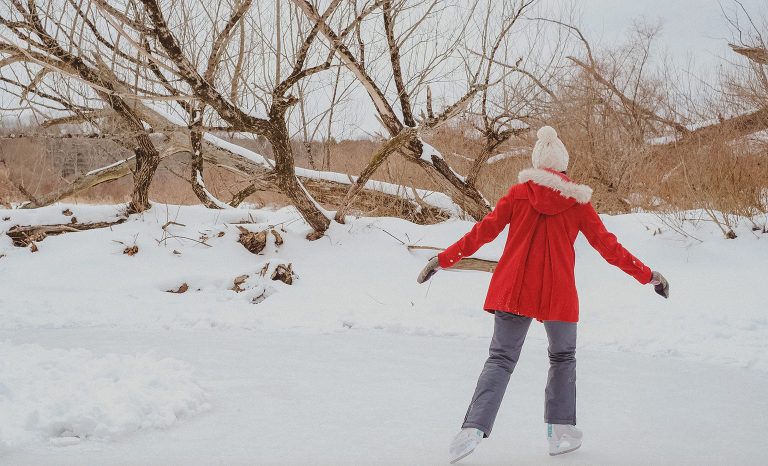 I’m not a pro ice skater. I definitely wobble and I can’t go backwards, but I do love to skate! Gliding atop frozen ice is an incredible feeling, especially when that ice is surrounded by trees and nature. All is quiet out on a frozen pond when it is just you and nature.