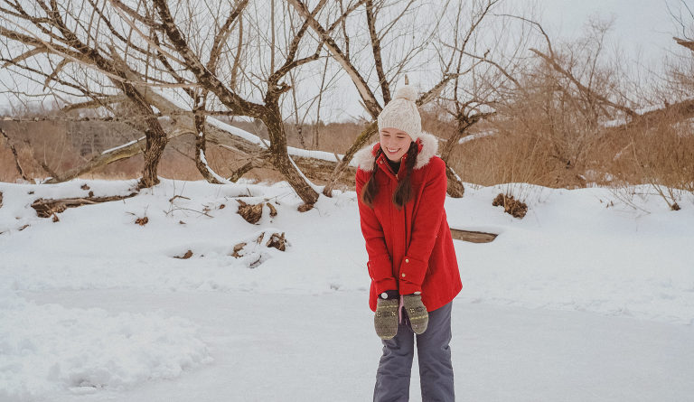 Ever since moving to our new home we have been spending more time outdoors; going on winter hikes, local walks, and even building an igloo in our backyard. Eventually I would like to try cross country skiing and snow shoeing, but the big one on my list for winter activities has always been ice skating. We’re avoiding the indoor rinks right now, but with so many ponds, lakes, and rivers nearby I knew that the skates was the best idea for an outdoor winter activity.