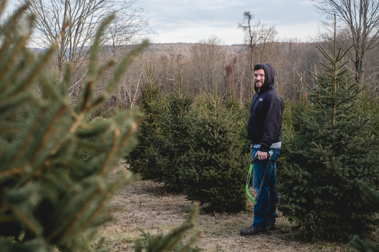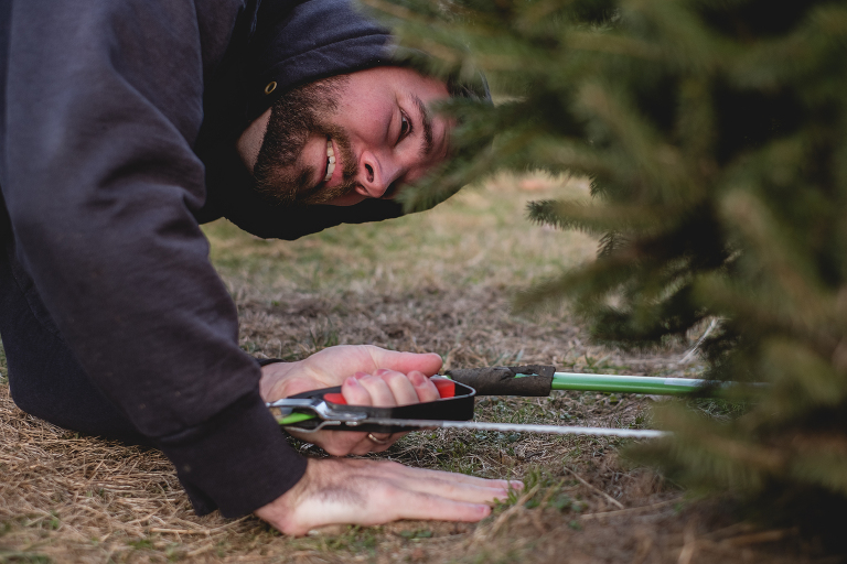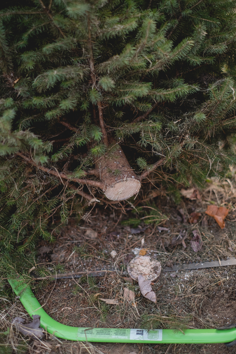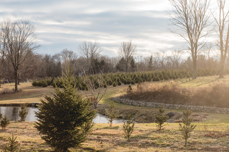 We pulled up to Frank’s Family tree farm and made our way to the shed in the back to learn about the farm. Frank, the owner’s son who is also named after his father who owns the farm, greeted us and told us about his family’s history. His great-grandmother lived in the big White House by the main road and he lives in the house next to his father’s. I love these lovely family farm stories. We were given our own saw and told that any tree was $40 to cut, except for the softer fir trees in the fenced area which are $55. We found a perfect tree right away, but Matthew said we should enjoy the moment and walk through the trees so we went off to explore.