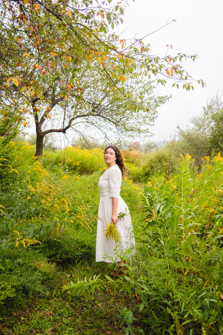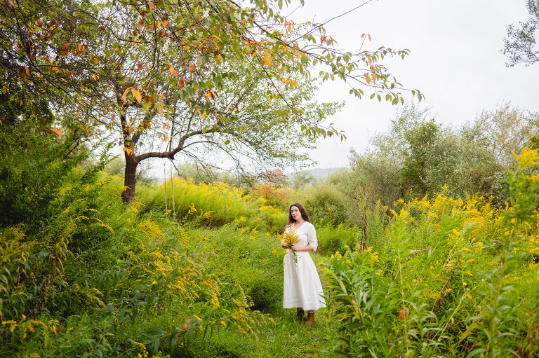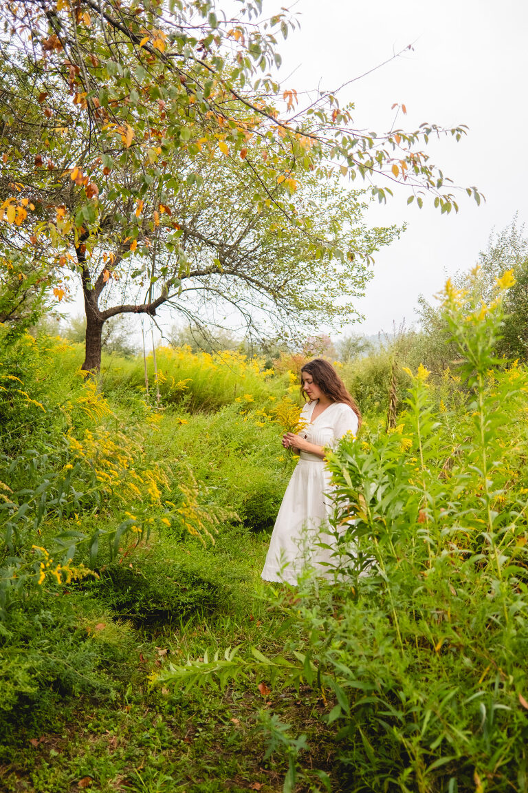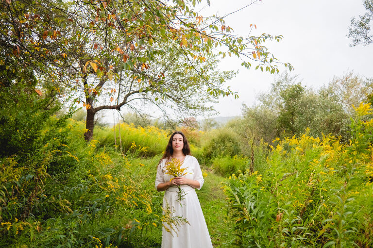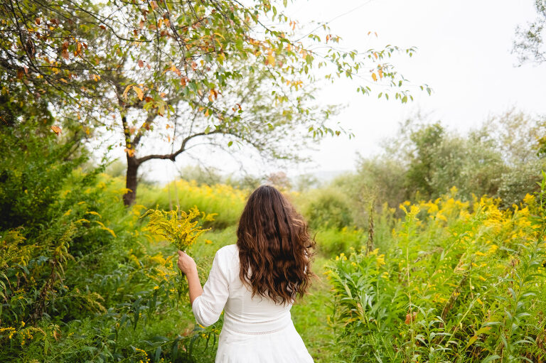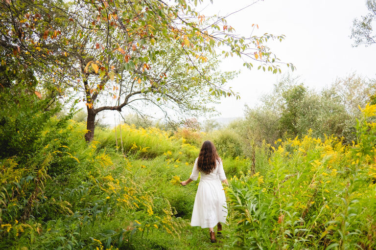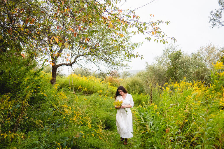 In the mornings I bring a cup of tea with me and sit on the swing. After work I walk down these paths and admire the sunset. You cannot see the cars from the road down here and the noise is dimmed from the hills. Birds chirp and we often see deer leaping in the lower field. This space feels hidden, like a secret. It is a natural garden of Queen Anne’s lace and goldenrod. Crab apples grow on a tree on the hill.