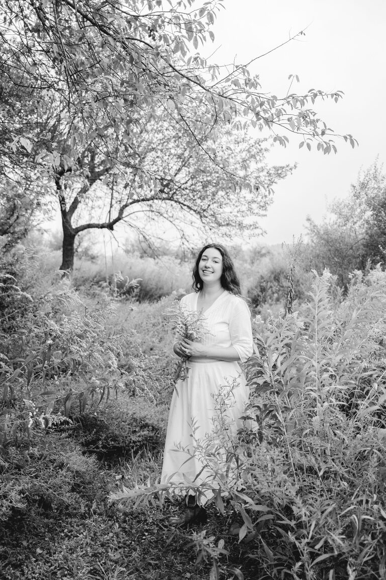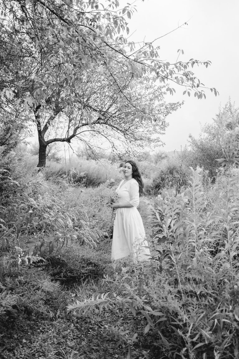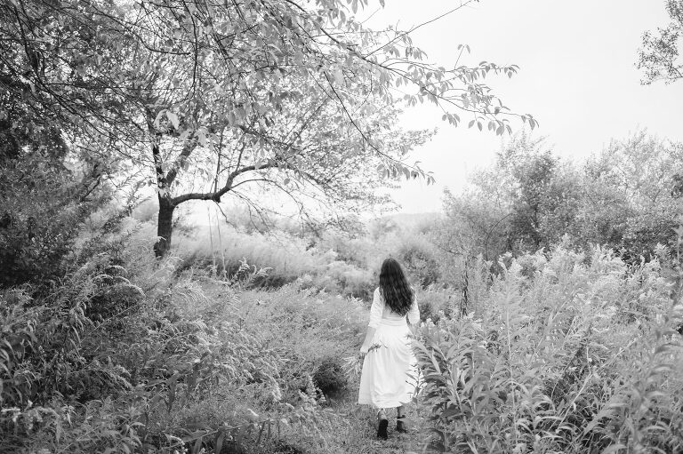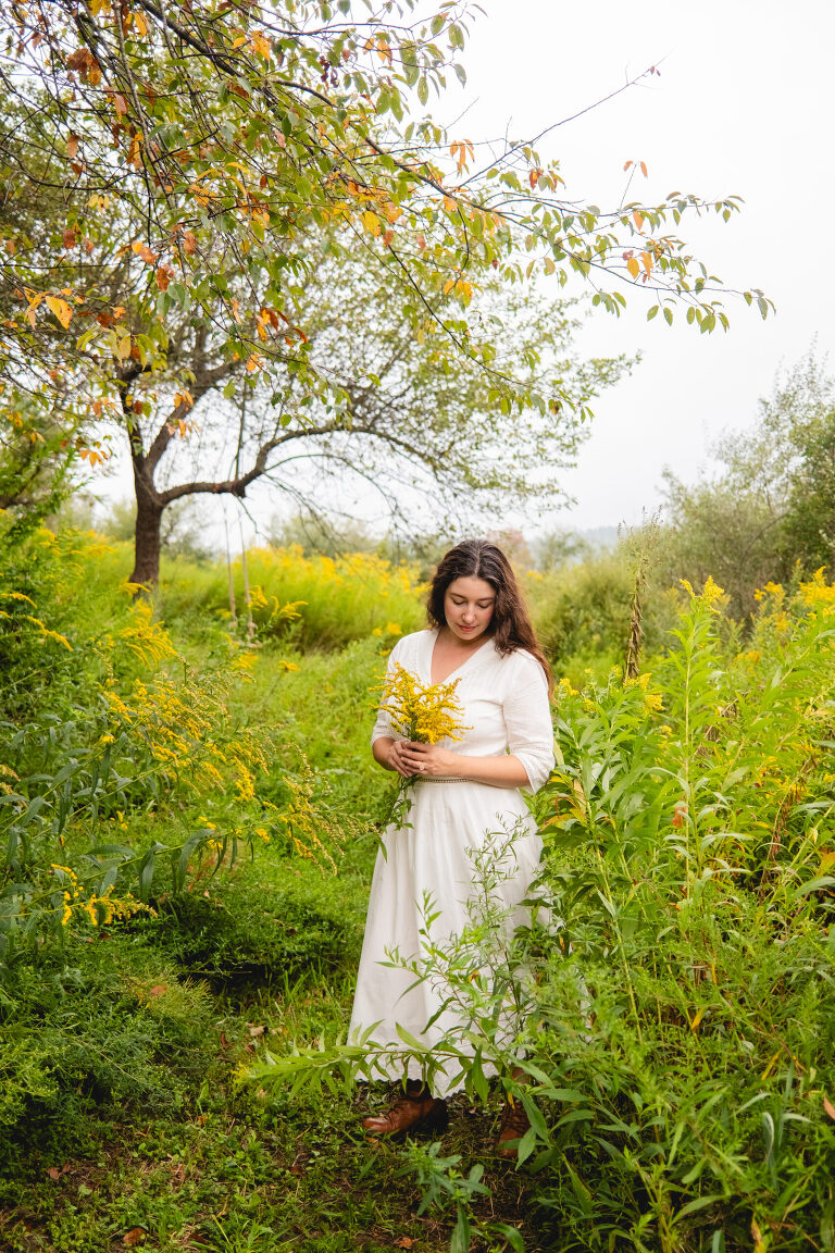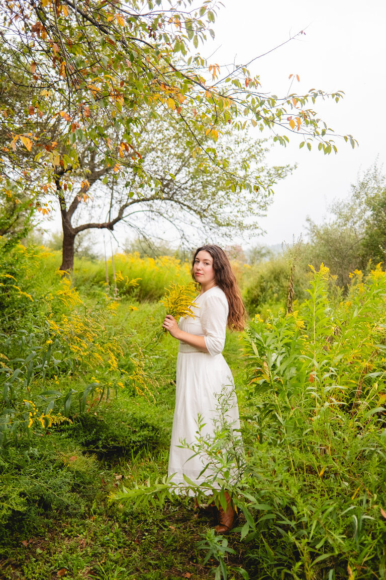 In the mornings I bring a cup of tea with me and sit on the swing. After work I walk down these paths and admire the sunset. You cannot see the cars from the road down here and the noise is dimmed from the hills. Birds chirp and we often see deer leaping in the lower field. This space feels hidden, like a secret. It is a natural garden of Queen Anne’s lace and goldenrod. Crab apples grow on a tree on the hill.