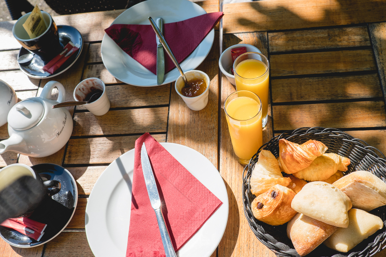 We found this lovely restaurant that was just opening for petite dejeuner. Breakfast in France is small. We started our morning with orange juice, tea, crescents, pastries, and jam.