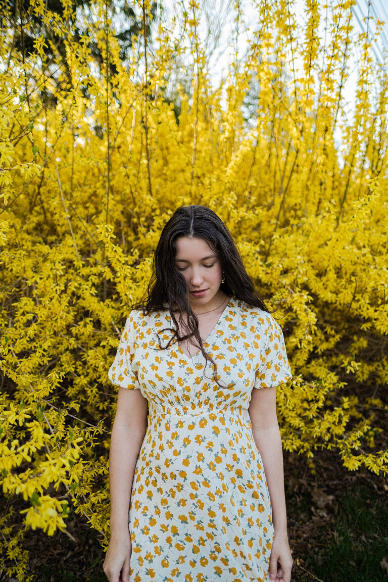 The yellow florals of this lovely spring dress from Hope & Honey remind me of the Forsythia blooms that I see all over the side of the road during my daily commute to and from work. The Hope & Honey boutique in Litchfield, Connecticut is celebrating their one year anniversary in town. We are collaborating to celebrate springtime in Litchfield this season.