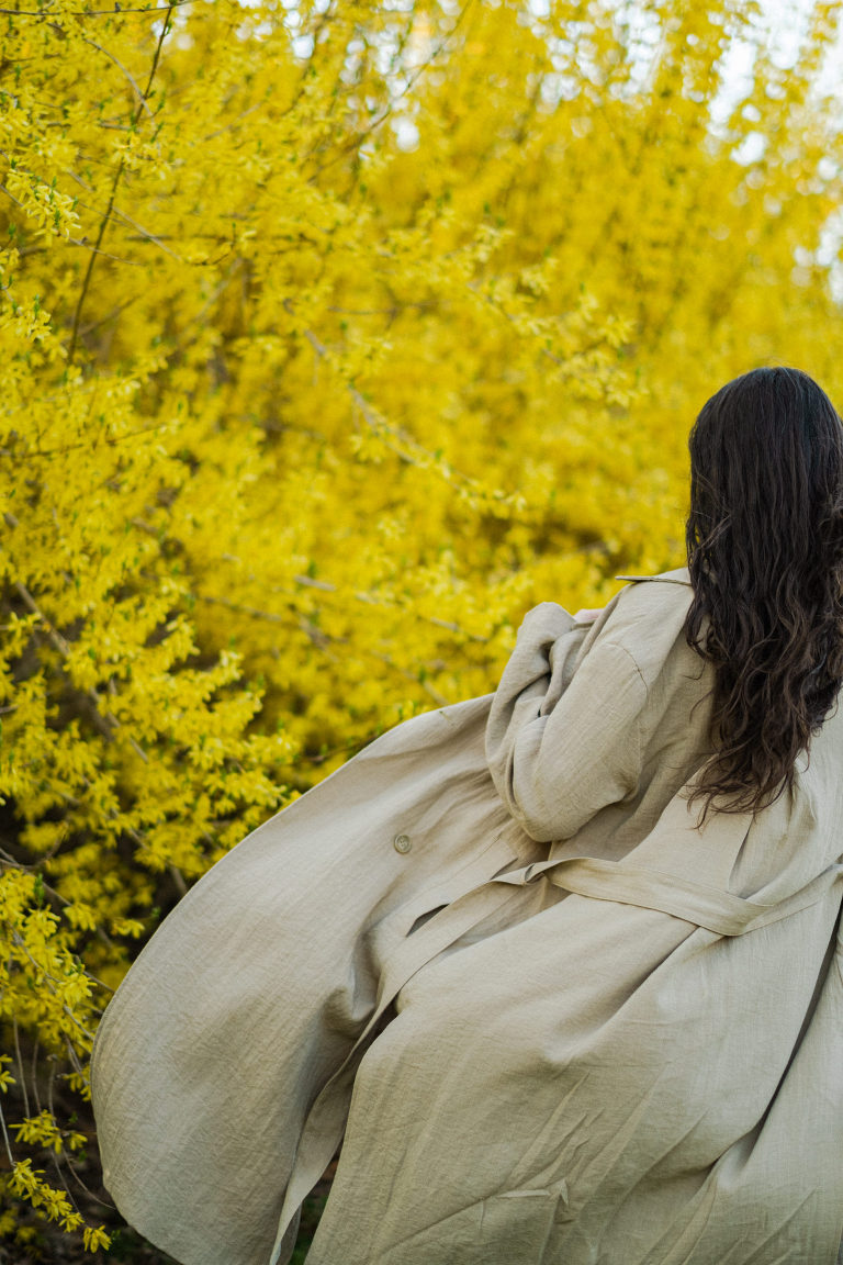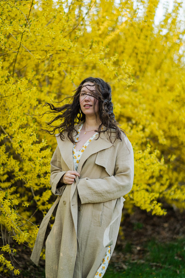 I styled this dress with a trench coat, a partially recycled double-breasted trench coat from H&M and my favorite Vepose brown ankle boots for a chilly and windy spring evening. This dress layers well to dress up or down.