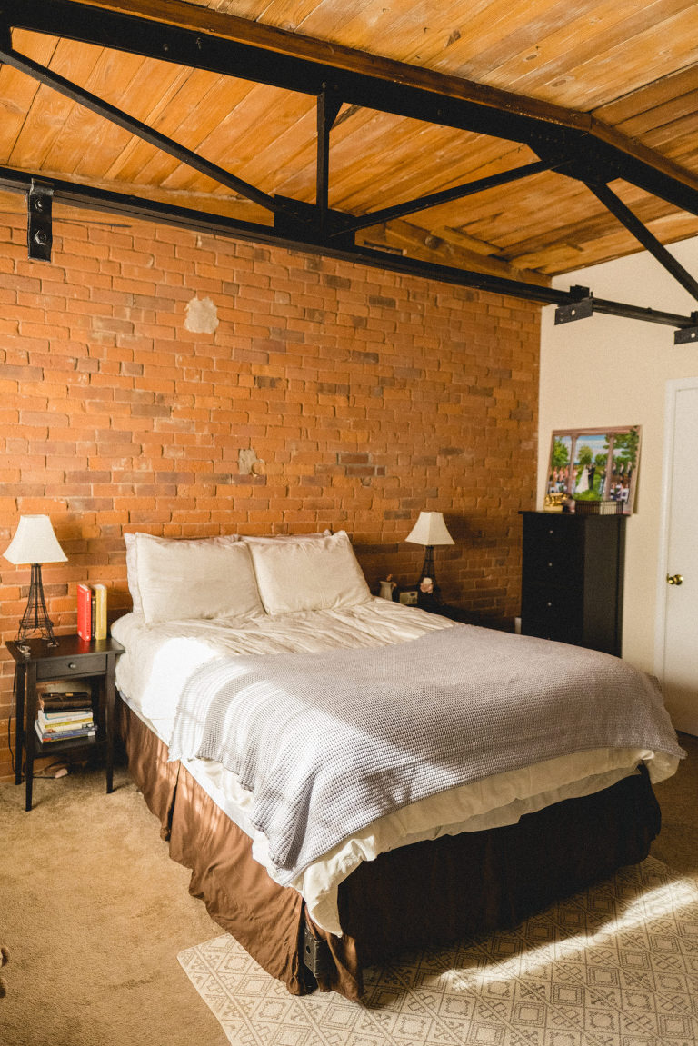 I finally finished cleaning our bedroom and it feels so good! I call the loft in our tiny apartment “the tower” because it is in an old factory building and our loft feels like going up into a tower with the brick walls, wooden ceilings, and metal beams running across the top. It was feeling very dreary like a tower too. Now it feels more like a tree house and I want to spend all of my time up there.
