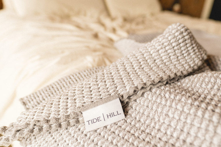 This Nantucket throw blanket by Tide Hill Home is big enough to fit on our queen sized bed and it is so warm as an extra layer of covers this winter.