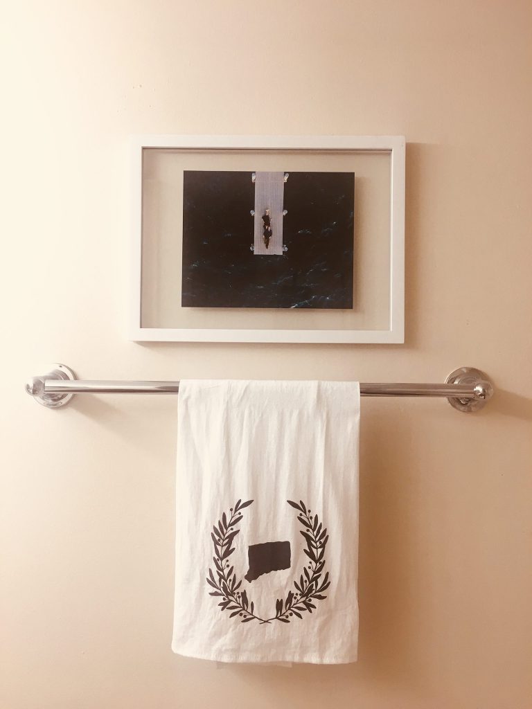 It looks really chic, but it is actually made of plastic. This mirror is very old and it used to hang in my Nana’s bedroom. She had it over her bureau since before I was born. I didn’t really keep anything of her’s except for some old photos and hand written recipe cards of her mother’s. I was looking for a mirror for our bedroom when my dad gave me her old one. It makes me think of her.
