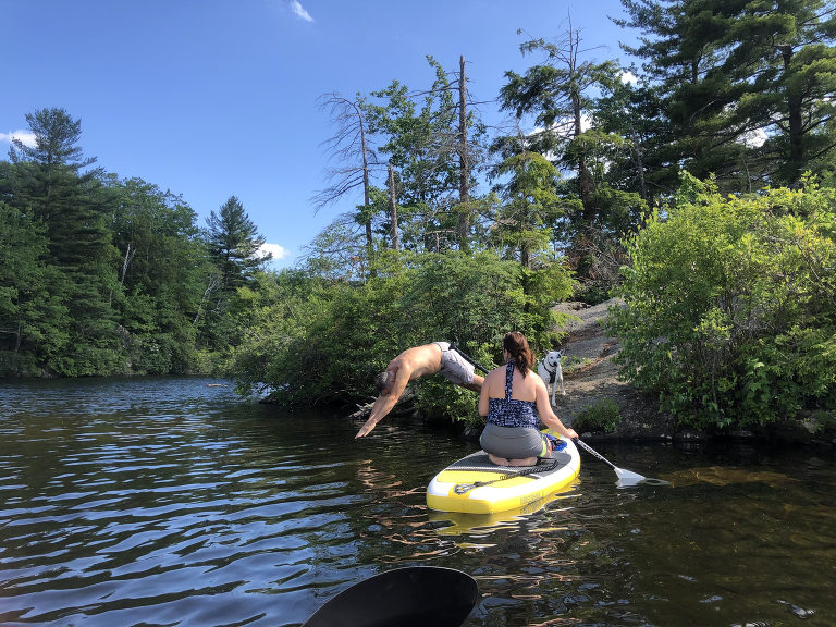 My dad jumping in. He loved paddling on his paddle board as we’re in the kayak.