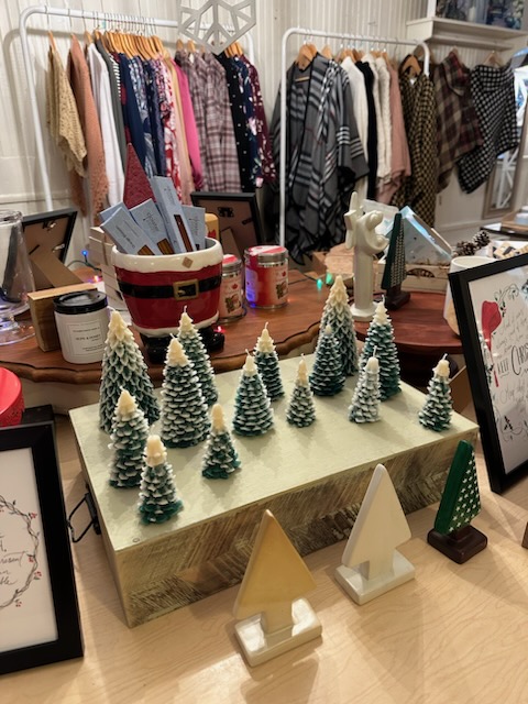 More candle making. This time I started using molds to make various types of Christmas tree candles and they became so popular from my Instagram that I started selling them, including at the local Hope & Honey Boutique.