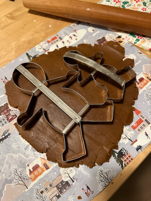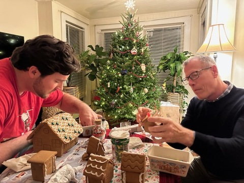 Making gingerbread houses on Christmas Eve. We lost power and used flashlights and candles to finish the job. Thankfully the power came back on time for dinner.