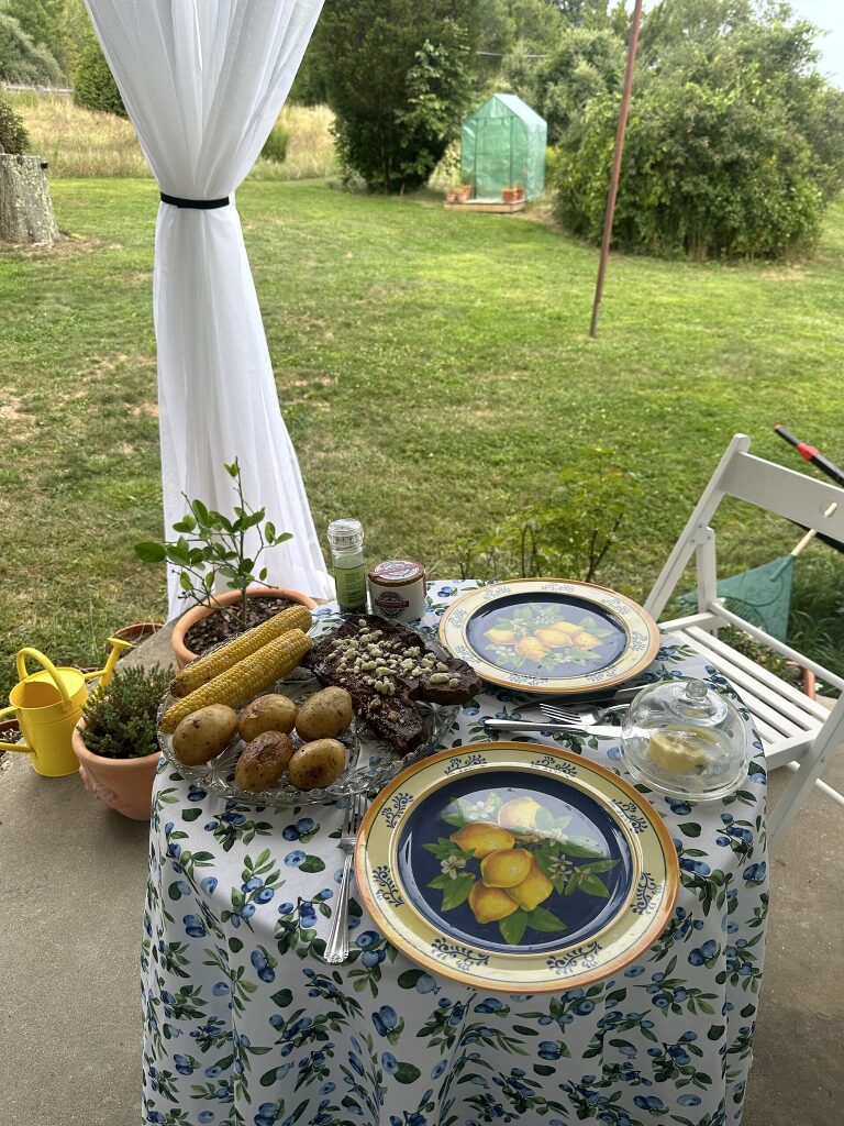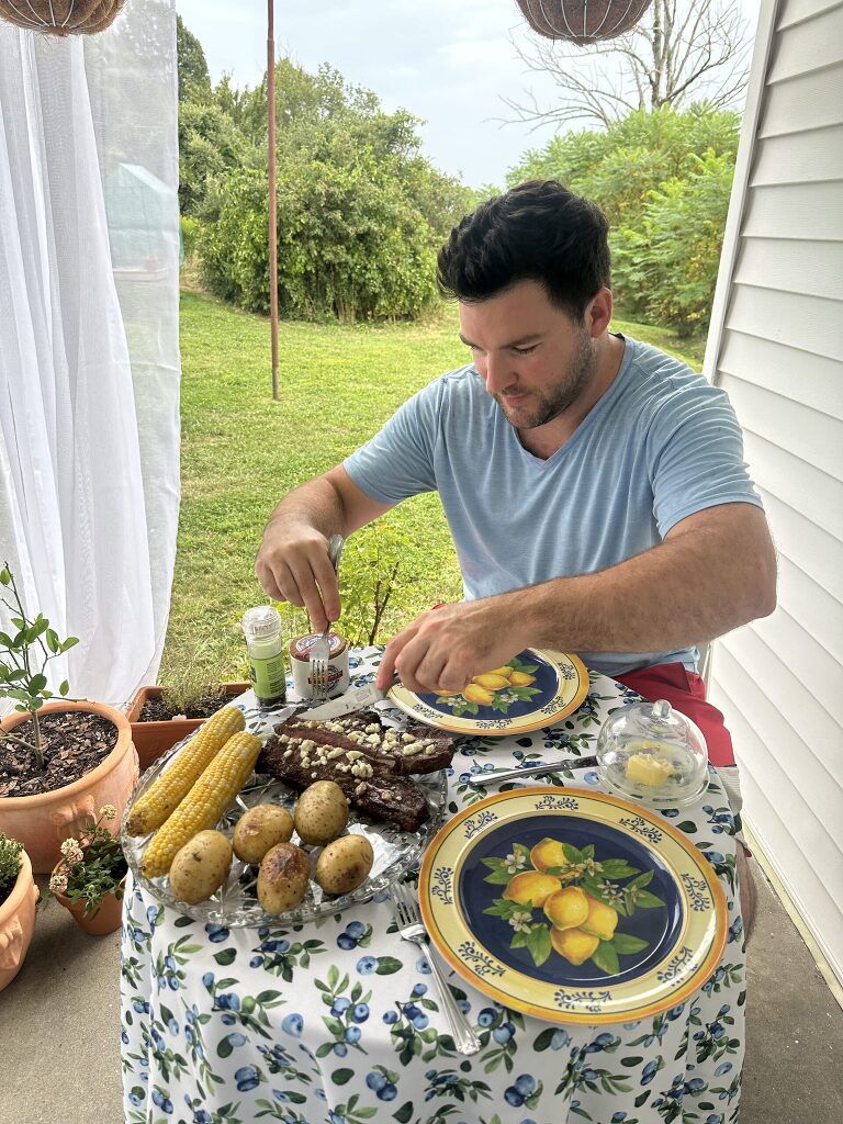 This was the summer that we leaned into being home. As renters, it sometimes feels hard to settle in as nothing feels permanent, but Matthew and I really made the most of where we are. Matthew fixed up an old grill that was gifted to us for free and he has been learning how to cook on it this summer. We have eaten al fresco as much as possible, which was my biggest summer goal, and we updated the front porch with more seating, plants for the pollinators and sheer curtains to keep out the bugs at night. Matthew even hung solar powered string lights. It has extended our time spent outdoors and has added a sense of tranquility that has been missing when we get home from work. Instead of being inside at twilight or after dark, we’ve spent evenings eating dinner, reading and even watching our favorite shows right on the front porch.