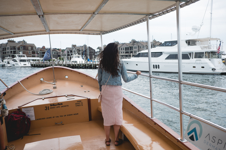 Yet my favorite way to get across Newport is by taking the Harbor Shuttle. This shuttle only cost us around $12 a person and you can hop on or off at any port all day! We took the final shuttle of the evening (when it was less crowded) to watch the sun lower over the water. We were the only people on the shuttle besides the Captain and one other couple enjoying the water. This is by far the best way to see Newport! .jpg)