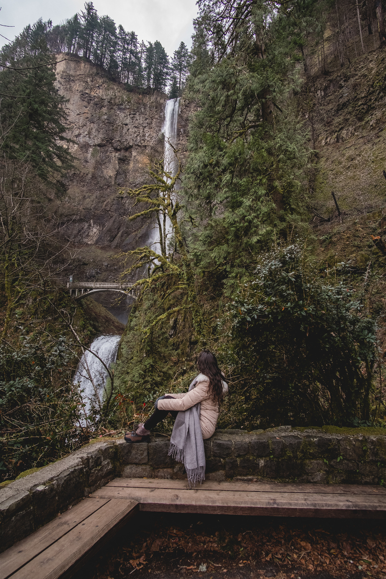 Multnomah Falls is right outside of Portland and an easy drive to get to. You take an exit right off the highway and walk under the highway to get to the entrance. You will find a restaurant, gift shop, public restroom, and even a snack hut before the park.
