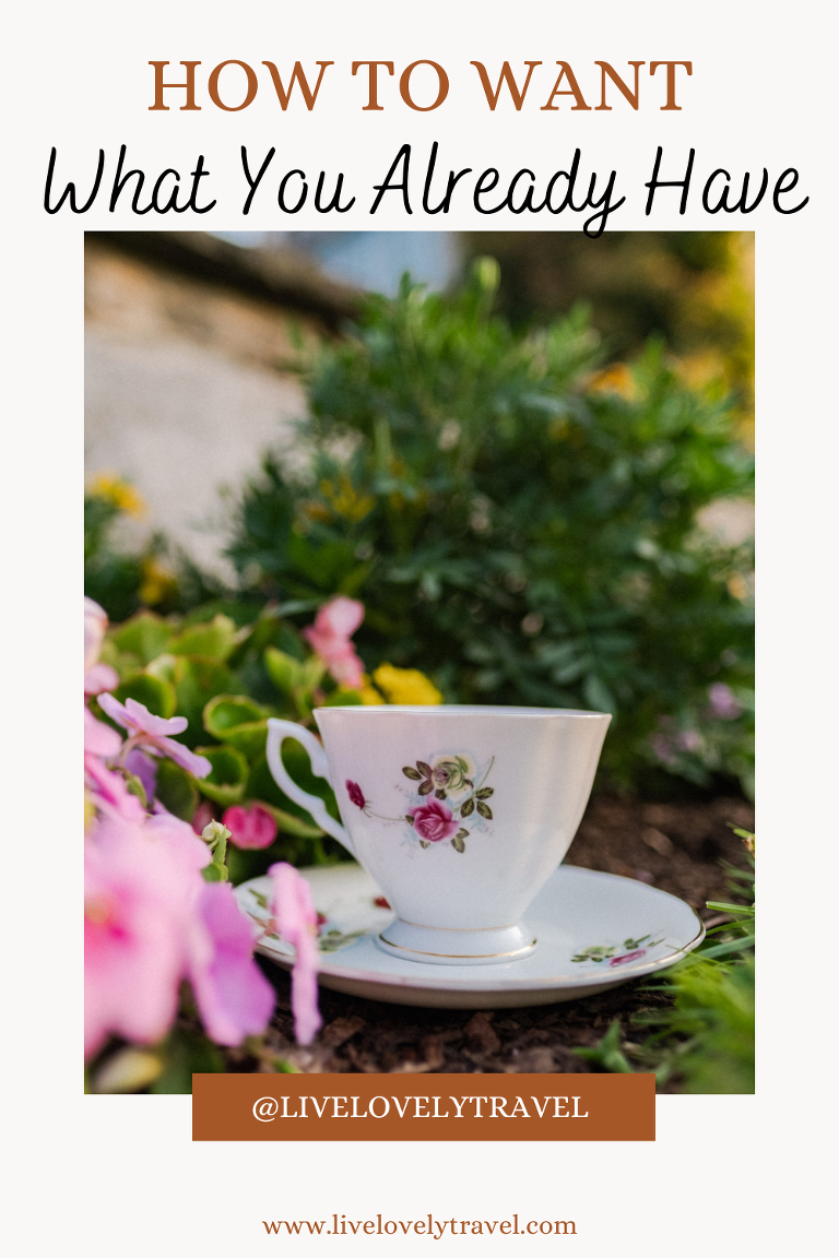 I hope you have a cozy cup of tea or coffee (or even hot chocolate) with you today. I am sitting here with a cup of tea in hand. Today I wanted to discuss the idea or wanting what we already have. It is the simple idea of loving or appreciating what we already own or the wonderful aspects of our lives that are already here. The human brain is wired to constantly be on the hunt for shelter and safety, for comfort, and for happiness. Happiness is not about things, but things certainly make us happy.It is easy to imagine how our brains confuse over consumption for this survival skill.