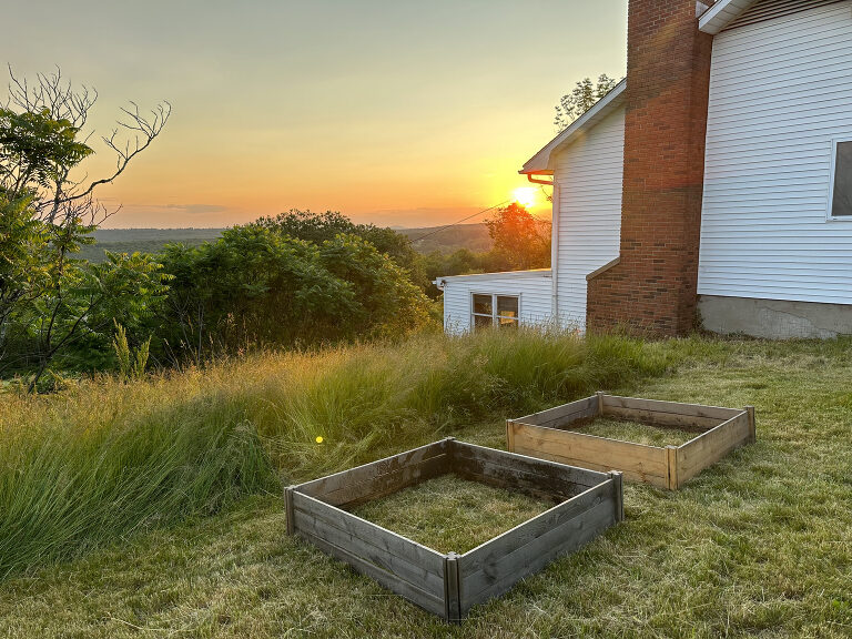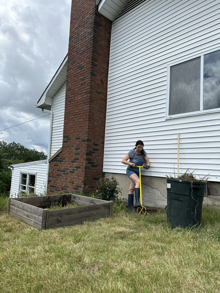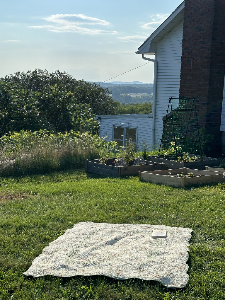 The photo above is what the house looked like when we first moved in. It has come a long way over the past couple months. Matthew has put in so much work creating pathways through the yard and keeping the rest meadows. We have built a beautiful raised bed vegetable garden, planted roses and sunflowers, and even started creating a tea room in the three-season room in the back of the house.