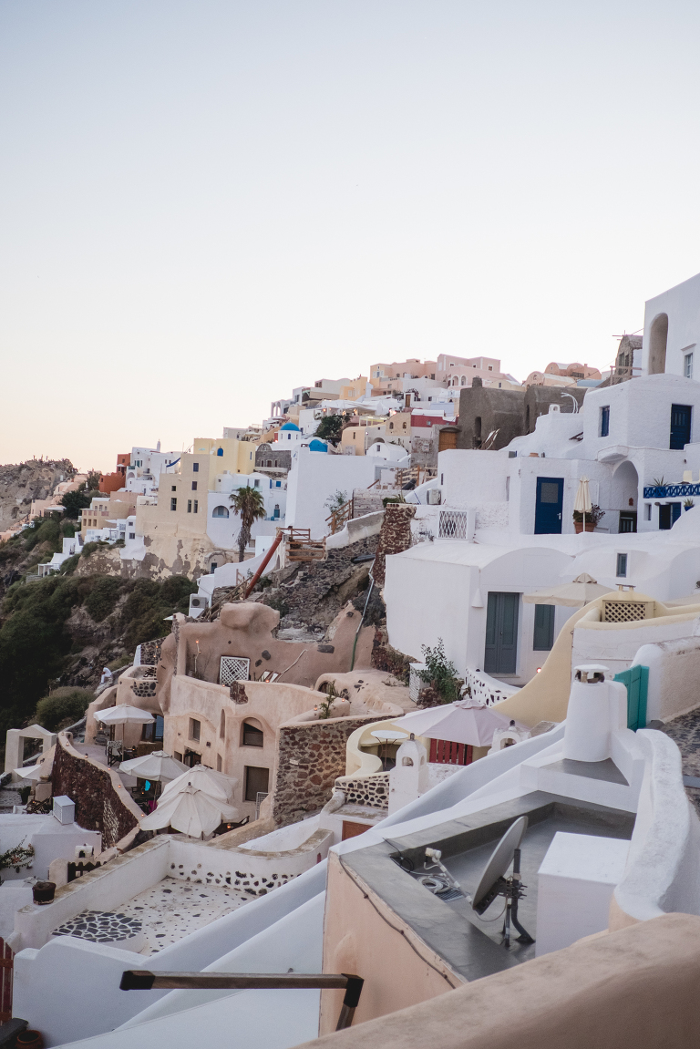 How about those famous Santorini sunsets? You won’t actually see one in oia! Tourists would line up on the top of the hill every night to see it, but you really can’t see it from Oia at all. The sun sets on the other side of the island, which is obstructed by the hills. Still a very pretty dusk though.