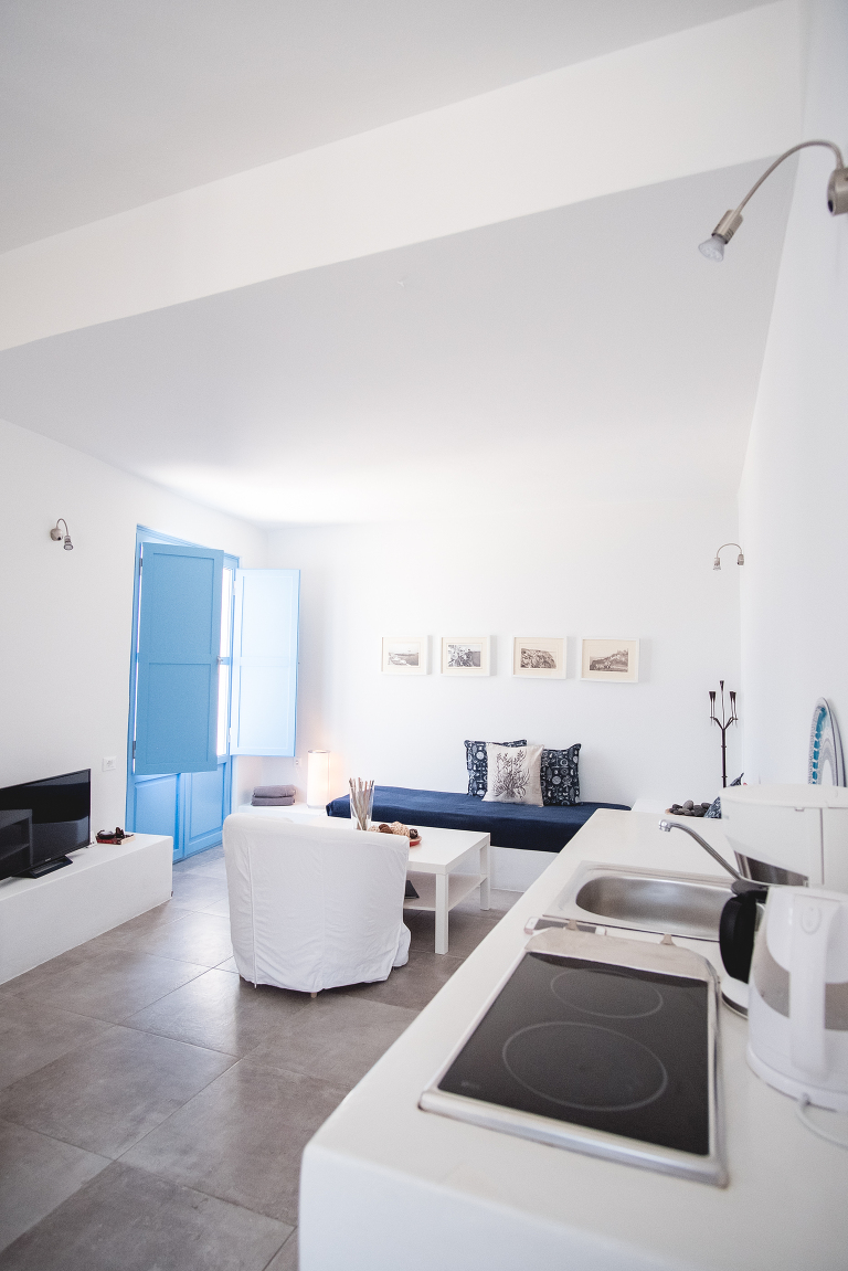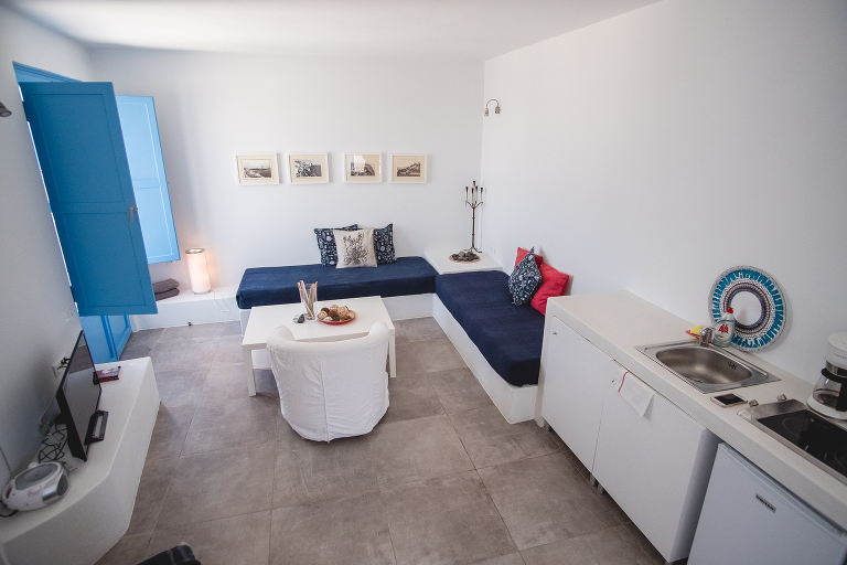 Many of the rooms here are also much more spacious and have more windows than the cave houses of Oia.