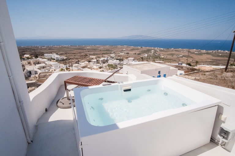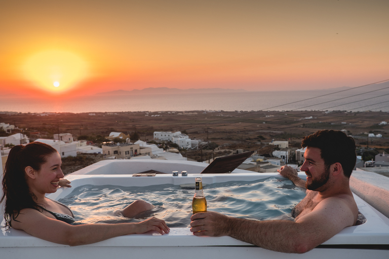 That being said, privacy in Oia is not really a thing. The cave houses are built literally right on top of one another. That romantic hot tub? Yes, all of your neighbors and the dozens of tourists walking by can see you, sometimes from many angles, unless your hot tub is inside without windows. The space we rented from Airbnb was further away from the main street and busy area of Oia, yet there were still plenty of people who had to walk through and around our patio space to get to where they were going.