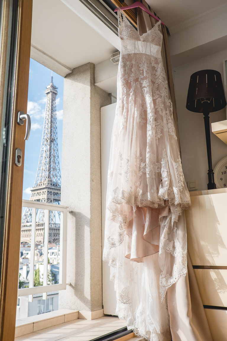 Because we were having professional portraits taken in Paris, I also bought my gown, veil, bolero jacket, and bridal heels!
