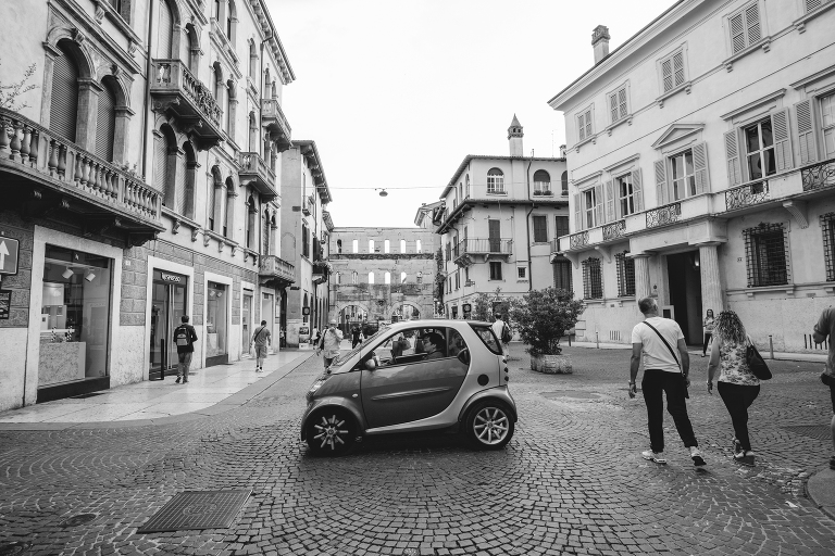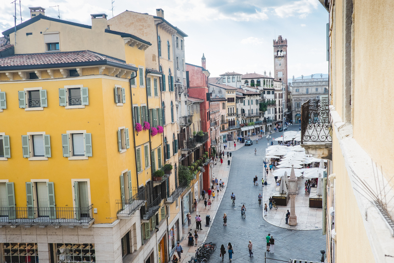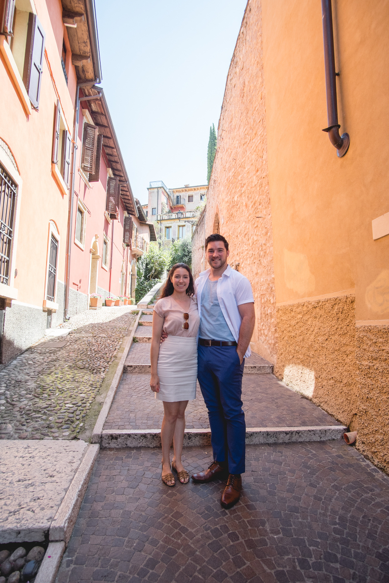 We hit a few roadblocks on the journey to Verona. Traveling by train in Italy is a lovely travel experience. The trains were very nice and they spent plenty of time at each stop to allow for guests to exit and enter the train, checking the platforms before taking off ten minutes later. Not this time. The stop was super quick and no one bothered looking to make sure everyone had exited safely. I walked off the train, Matthew right behind me with all of our luggage when I felt the door close right behind me. I spun around and saw Matthew on the other side of the glass door. An Italian gentleman tried to open the door with the button and wave down the conductor, but seconds later the engine started and the train was making its way down the track with my new husband on board!