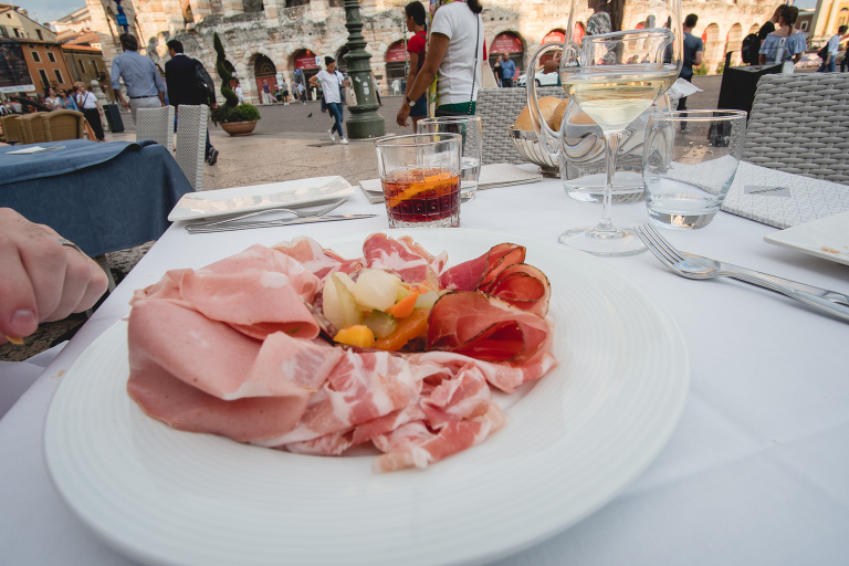 The Arena is smaller than the Coliseum in Rome, but older and in near perfect shape. It is so well maintained that it is even used today for shows all year long and a summer concert and opera series! As we walked to our Airbnb I took a look and knew we had to return for dinner overlooking the area.