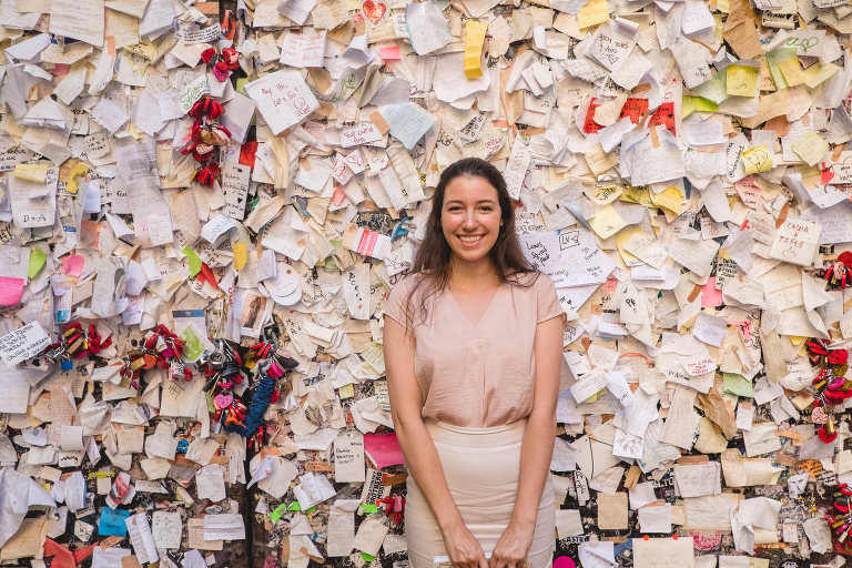We woke up early the next morning and took the two minute walk (we chose an Airbnb that was super close) to Juliet’s house! We arrived when they opened at eight and there was already a small crowd by the door. I managed to get a few pictures in without anyone else before the crowd grew. If you have seen “Letters to Juliet” then you will recognize this famous place.