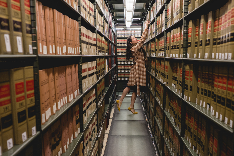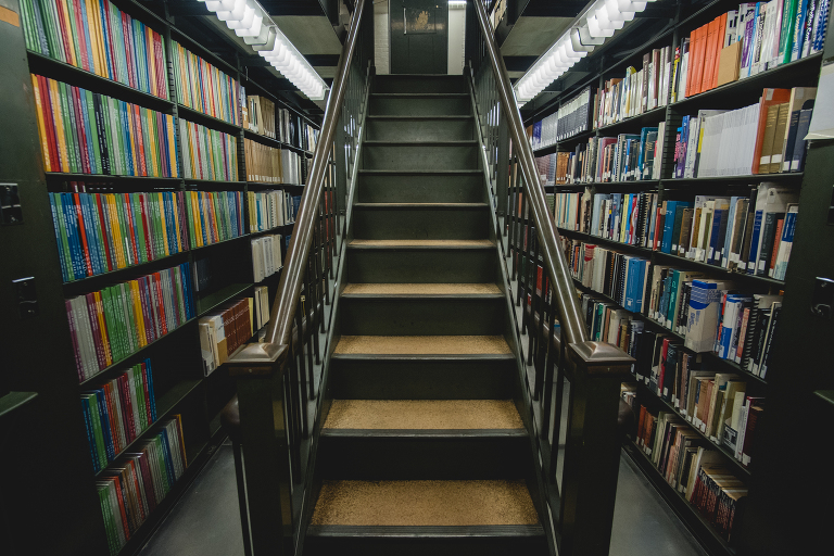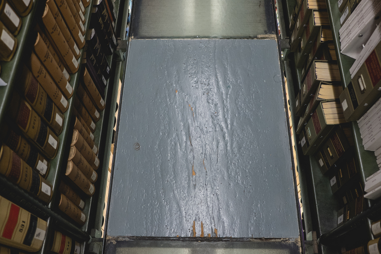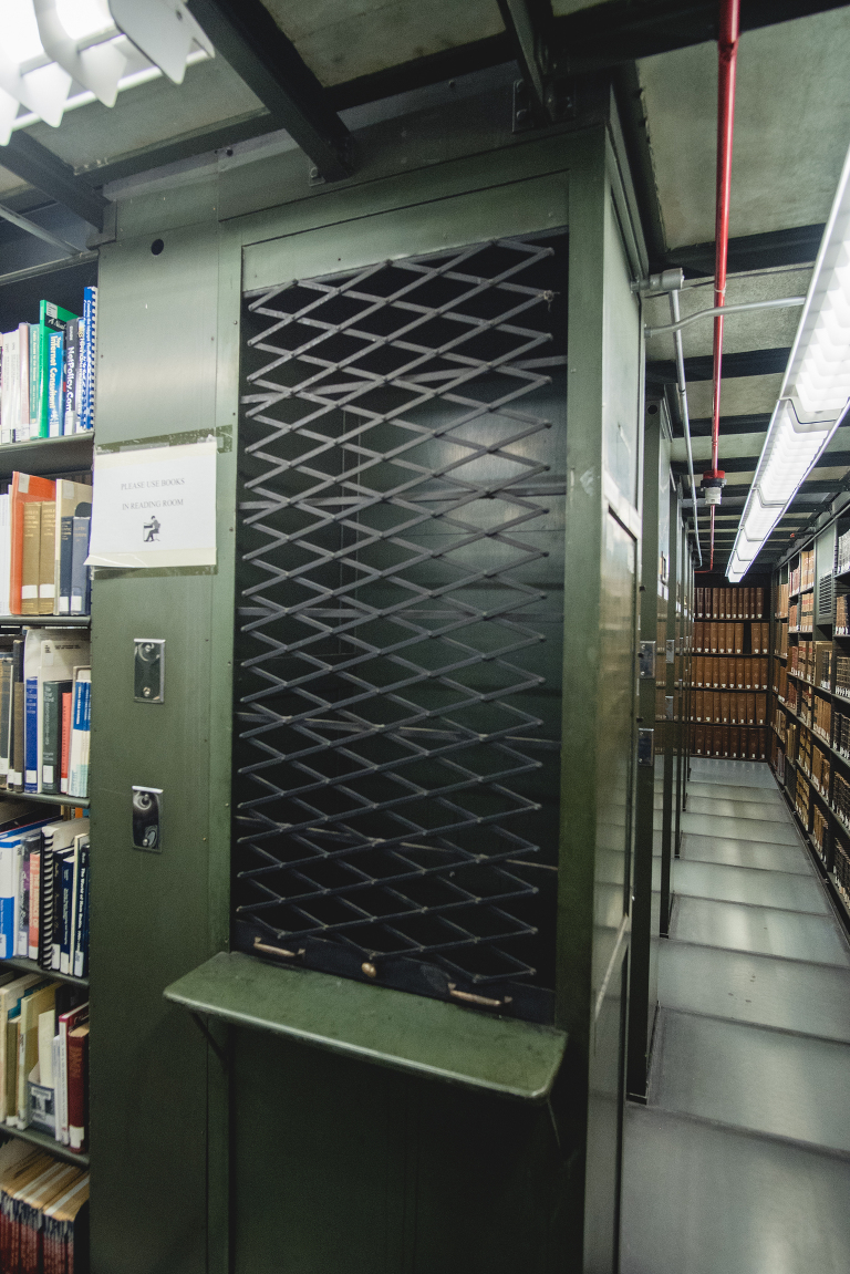 As beautiful as the main library room is, the several floors with all of the bookcases is where the real magic is hidden. Archival records are in the basement, but all of the books are on floor after floor… made of glass.
